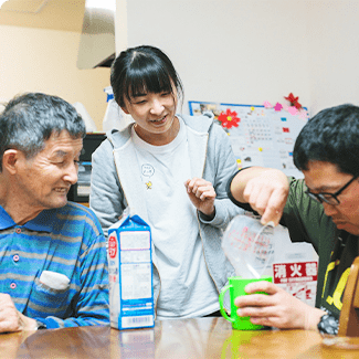 ホーム入居体験やショートステイなどグループホームの入居というステップを経て、グループホームでの生活を楽しんだり、一人暮らしを実現していくことができるよう、利用者の方の自立を支え、夢を叶えるお手伝いを行っています。また、個別で相談できる環境を提供することによって、お一人おひとりに寄り添うことを大切にしています。